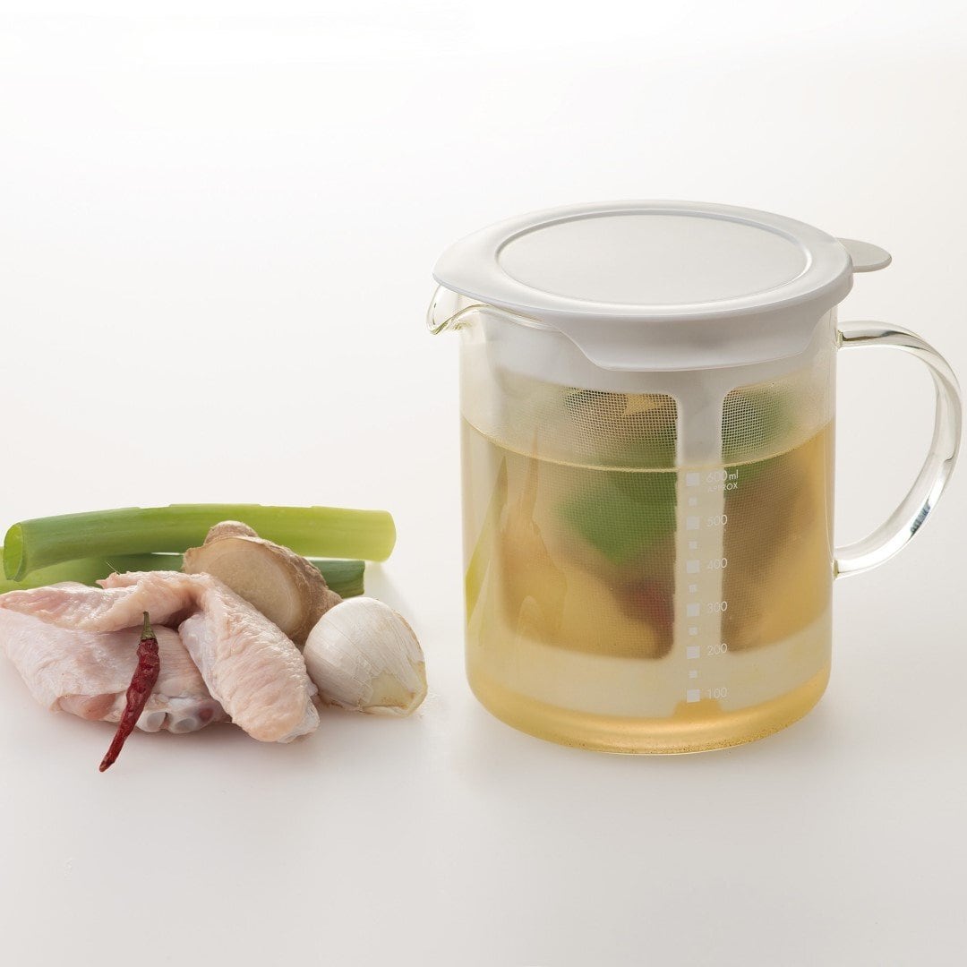 蓋には密閉性はありません(保存の際はご注意ください)が、ストレーナー置きとしても使えるようになっています。